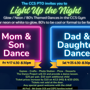 Sure to be a great night of bonding and fun! If you haven’t already registered, please be sure to do so! Mother/Son Dance – Friday, April 17th at 6:30pm Please call the school office if you have any questions.